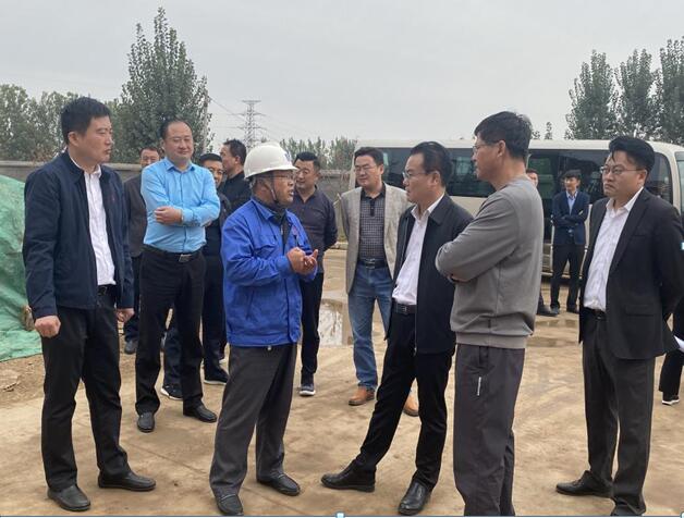 在項目施工現場,劉英奎詳細介紹了企業概況、項目建設進度及公司發展后續方向。尹作義對公司的未來發展以及近年來園區取得的發展成果給予充分肯定和贊賞。