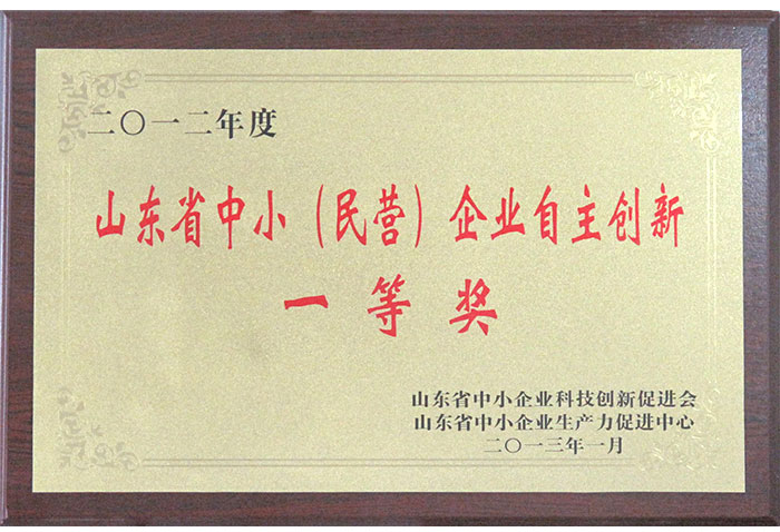 山東省中小(民營)企業自主創新一等獎